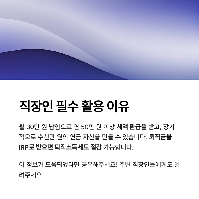 은퇴 자산 운용의 핵심 수단으로 활용할 수 있습니다