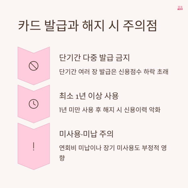 특히 단기간에 여러 장의 카드를 발급하거나, 오래 사용한 카드를 갑자기 해지하는 것은
