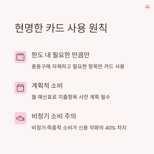 기본을 지키는 것만으로도 신용카드 부작용을 예방할 수 있습니다.