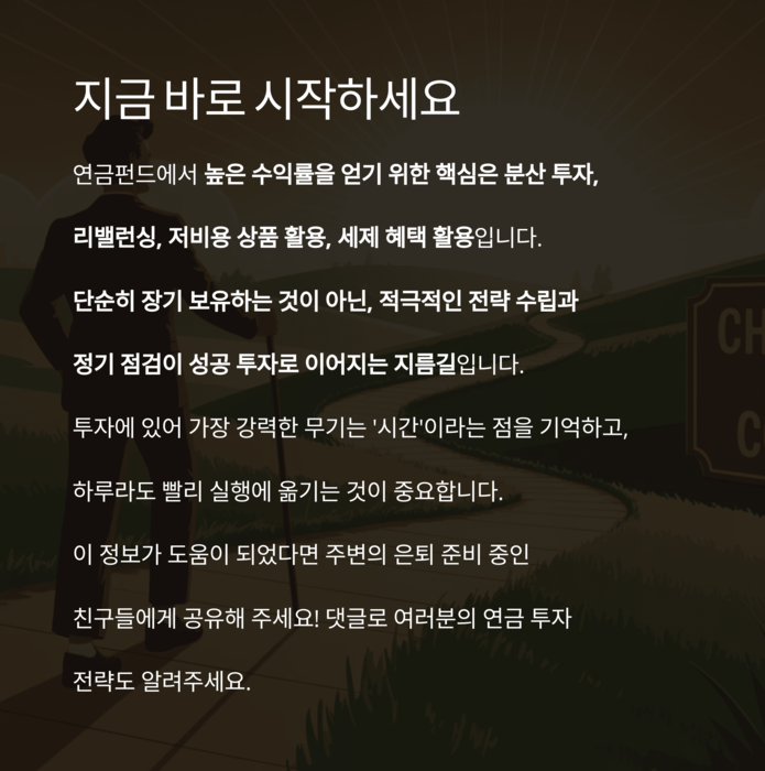 운용보수가 낮은 ETF 중심으로 연금펀드를 구성하거나, 총보수 1% 미만의 저비용 펀드를 선택하는 것이 유리합니다.